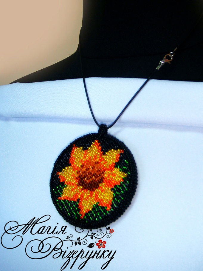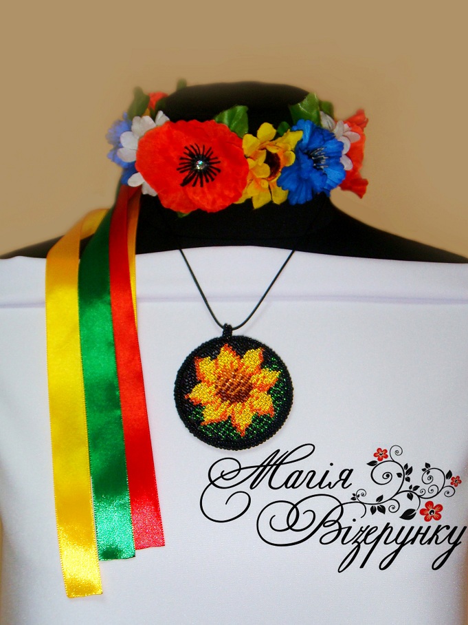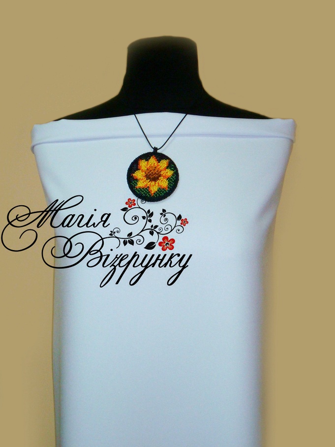 Заготовка для вишивання кулона комлектується тканиною для вишивання з нанесеною схемою, основою для кулона діаметром 6 см,  шнуром з защіпкою та детальною інструкцією з виготовлення виробу.