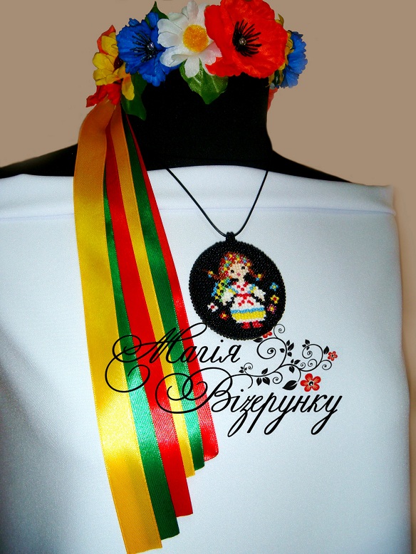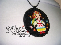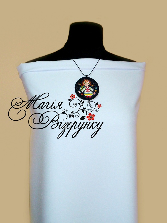 Заготовка для вишивання кулона комлектується тканиною для вишивання з нанесеною схемою, основою для кулона діаметром 6 см, шнуром з защіпкою та детальною інструкцією з виготовлення виробу.
