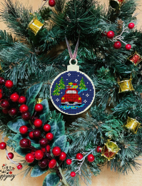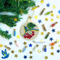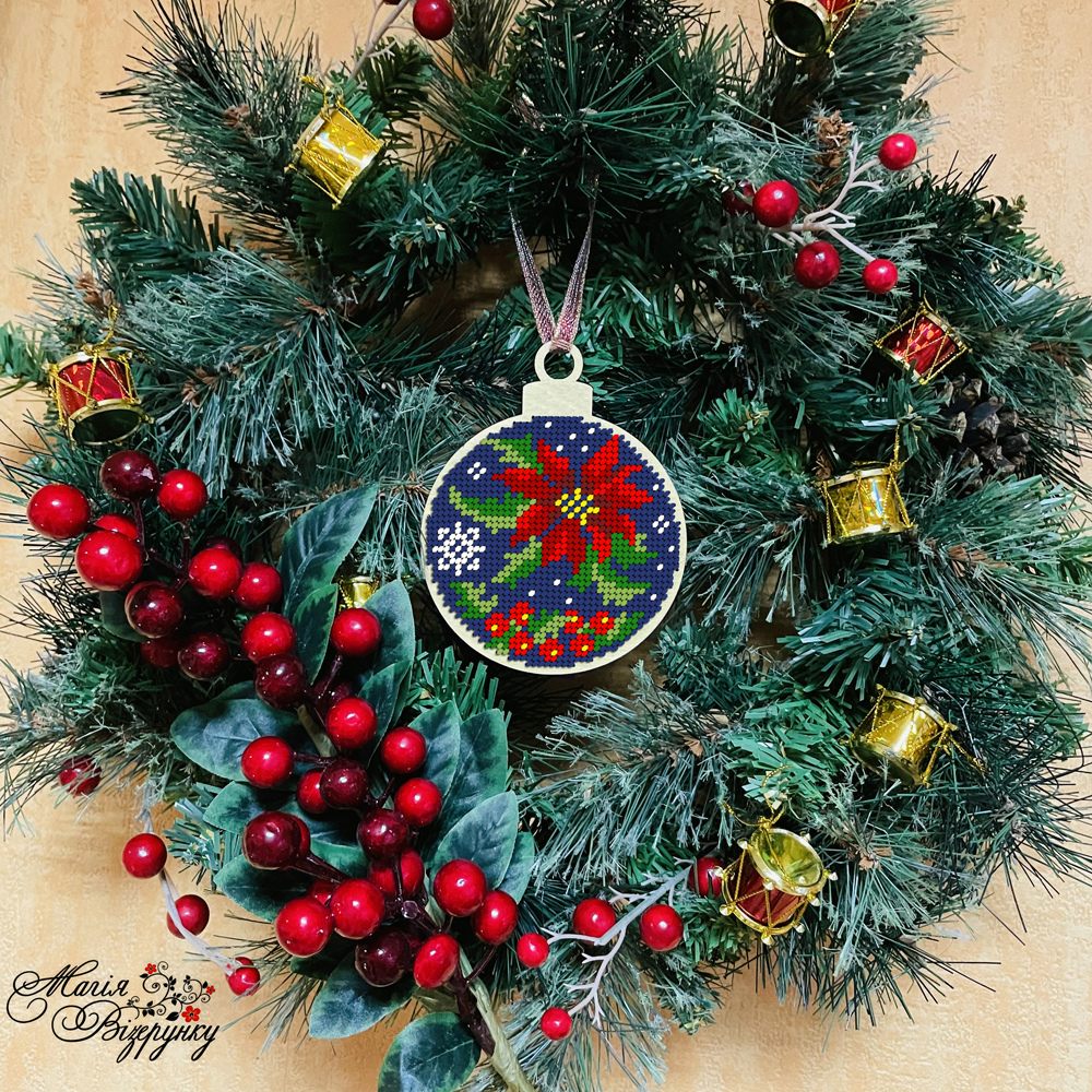 У комплект входить схема для вишивки бісером, та атласна стрічка для того, щоб було зручно повішати іграшку