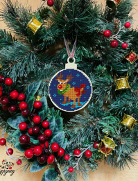 У комплект входить схема для вишивки бісером, та атласна стрічка для того, щоб було зручно повішати іграшку