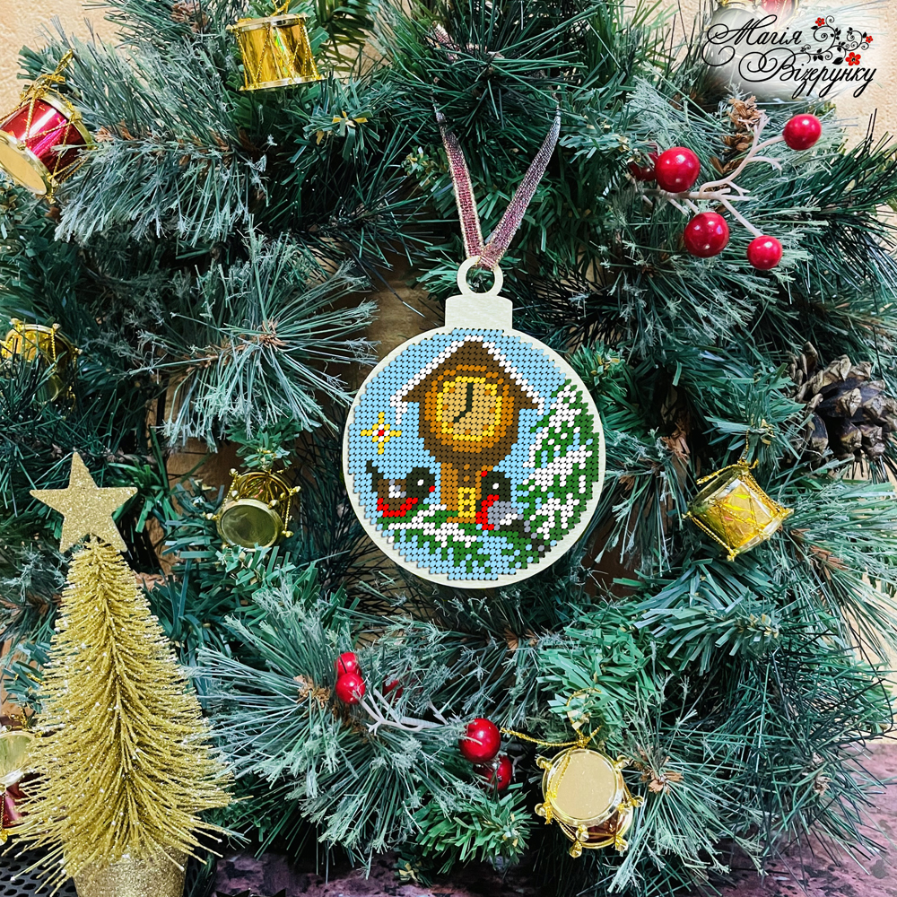 У комплект входить схема для вишивки бісером, та атласна стрічка для того, щоб було зручно повішати іграшку