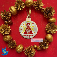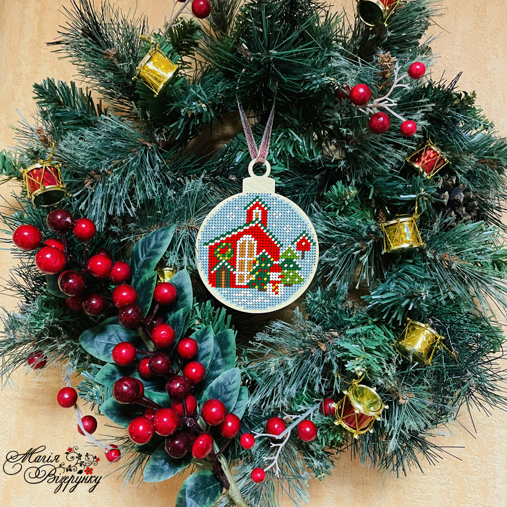 У комплект входить схема для вишивки бісером, та атласна стрічка для того, щоб було зручно повішати іграшку