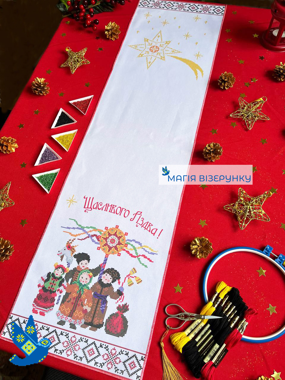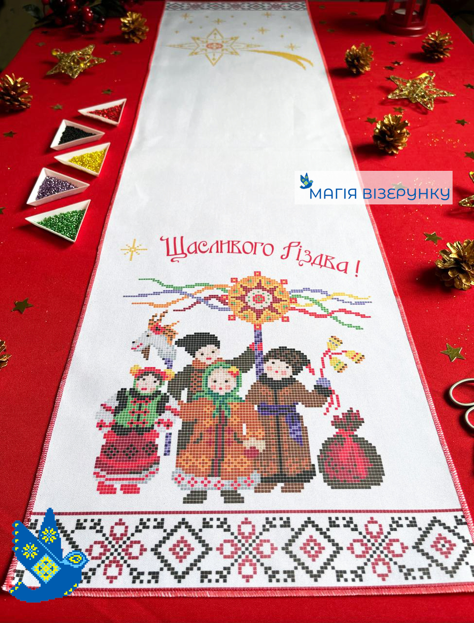 заготовка для вишивки новорічного ранера бісером або нитками