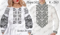 Жіноча сорочка для вишивки бісером, нитками або в змішаній техніці з нанесеною повноколірною схемою на тканині. Заготовка складається з двох полотен 75*75см на передню частину і на спинку (без вишивки) та двох полотен 75*65 см на рукави. В комплект входить інструкція в якій вказано кольори бісеру і його кількість, рекомендовані номери ниток DMC.  Дану заготовку ви можете скроїти за своїми розмірами та фасоном.