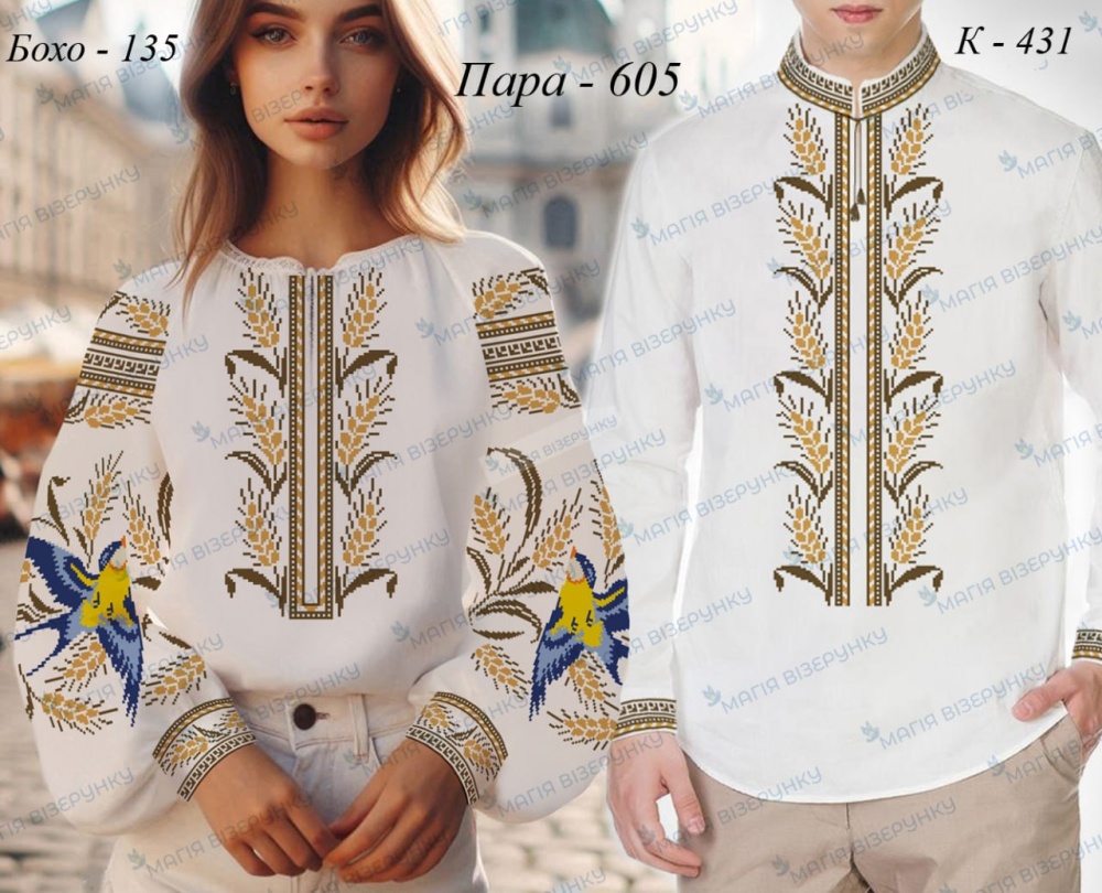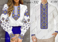 Чоловіча сорочка: Тканина для вишивки нитками, бісером з нанесеною повно колірною схемою  . В  комплект   входить чотири відрізи тканини  75*80см з друком на передню частину та окремого полота з друком  манжетів і  комірця,  інструкція   в  якій  вказано   кольори  бісеру  і  його кількість  та   рекомендовані  номери ниток DMC.   Дану  заготовку  ви  можете  скроїти  за  своїми  розмірами  та  фасоном. Перед  вишивкою потрібно  зробити розмітку горловини та обробити розріз (петлевим швом ,можна вставити замочок чи ін.).
