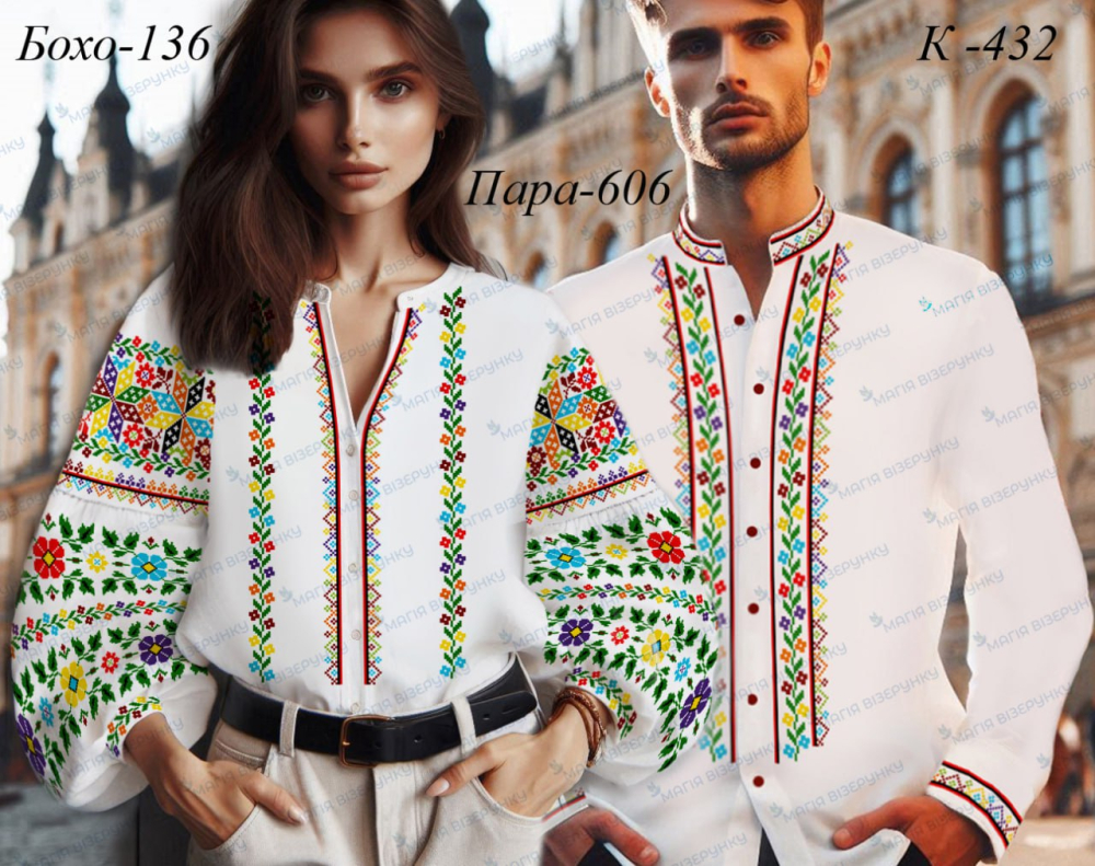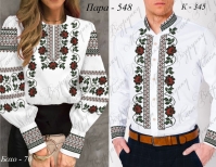 Чоловіча сорочка: Тканина для вишивки нитками, бісером з нанесеною повно колірною схемою  . В  комплект   входить чотири відрізи тканини  75*80см з друком на передню частину та окремого полота з друком  манжетів і  комірця,  інструкція   в  якій  вказано   кольори  бісеру  і  його кількість  та   рекомендовані  номери ниток DMC.   Дану  заготовку  ви  можете  скроїти  за  своїми  розмірами  та  фасоном. Перед  вишивкою потрібно  зробити розмітку горловини та обробити розріз (петлевим швом ,можна вставити замочок чи ін.).