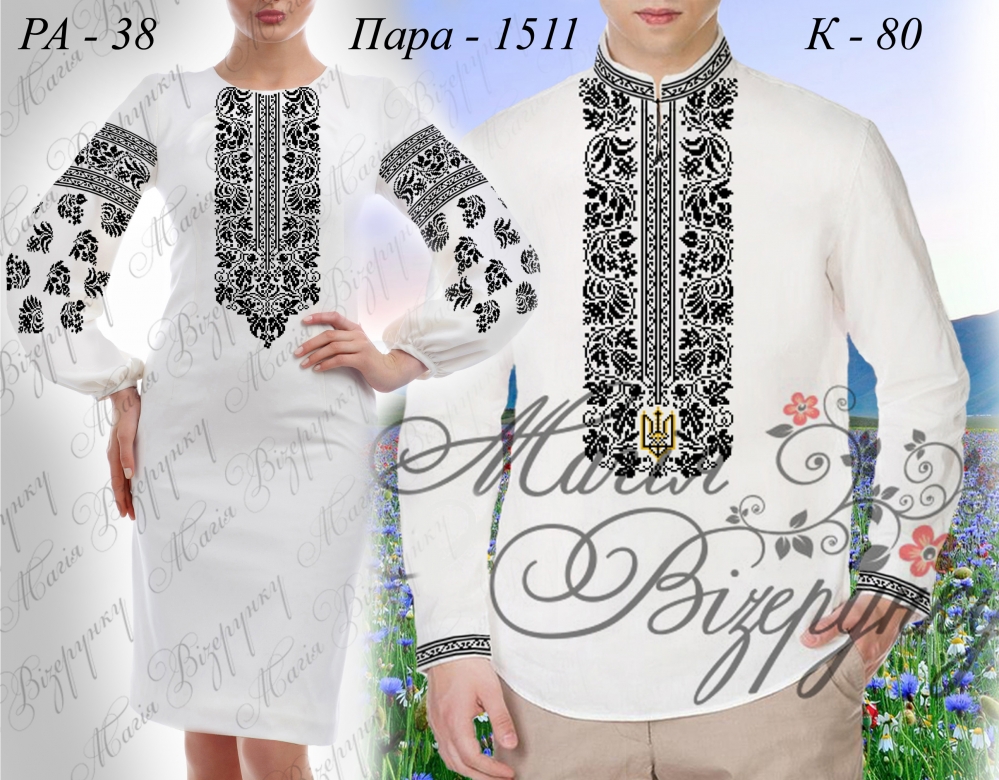 Тканина для вишивки нитками, бісером з нанесеною повно колірною схемою  . В  комплект   входить чотири відрізи тканини  75*80см з друком на передню частину та окремого полота з друком  манжетів і  комірця,  інструкція   в  якій  вказано   кольори  бісеру  і  його кількість  та   рекомендовані  номери ниток DMC.   Дану  заготовку  ви  можете  скроїти  за  своїми  розмірами  та  фасоном. Перед  вишивкою потрібно  зробити розмітку горловини та обробити розріз (петлевим швом ,можна вставити замочок чи ін.).
