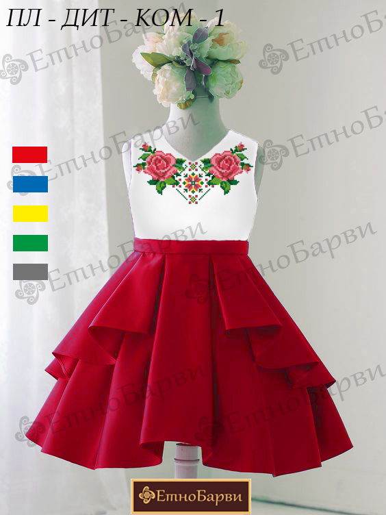 Можливі 5 кольорів спіднички: жовтий, синій, зелений, червоний. сірий.