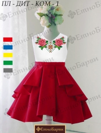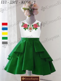 Заготовка для дитячого плаття складається з двох відрізів 50*50см білого габардину та 100*150см кольорового габардину.