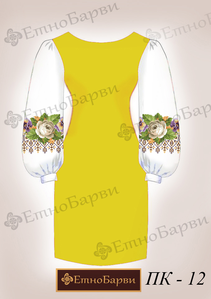 Заготовка плаття на довгий рукав на габардині складається з 2 полотен 75 см на 110 см ( перед та спинка на кольоровому габардині) та 2 полотен 75 см на 55 см ( рукави).