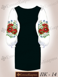 Заготовка плаття на довгий рукав на габардині складається з 2 полотен 75 см на 110 см ( перед та спинка на кольоровому габардині) та 2 полотен 75 см на 55 см ( рукави).