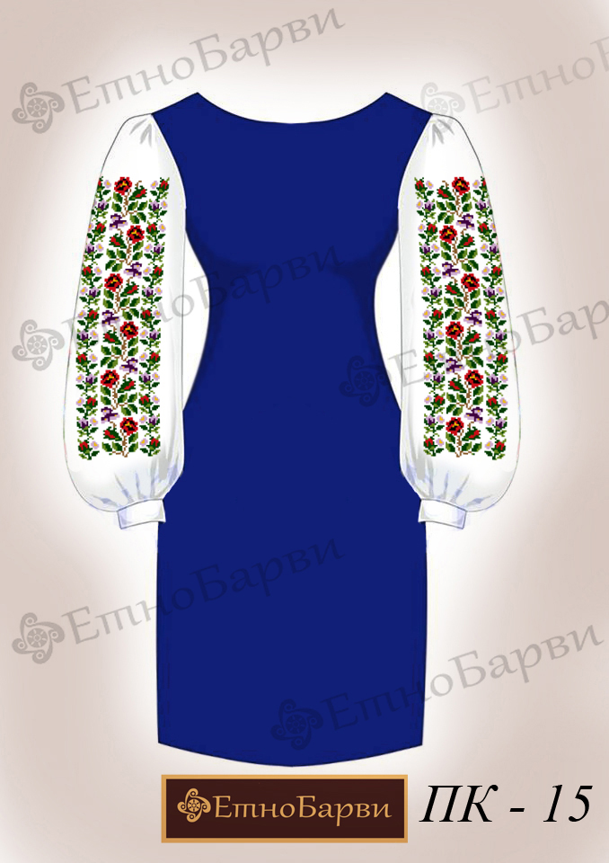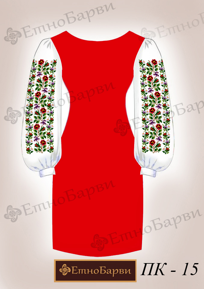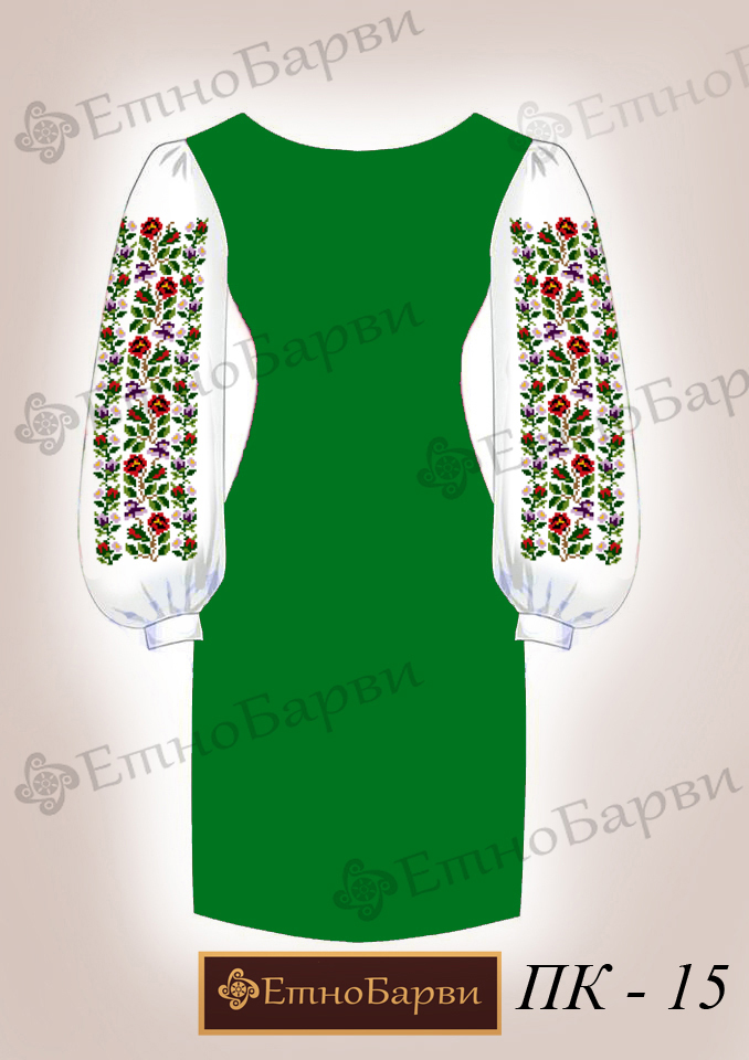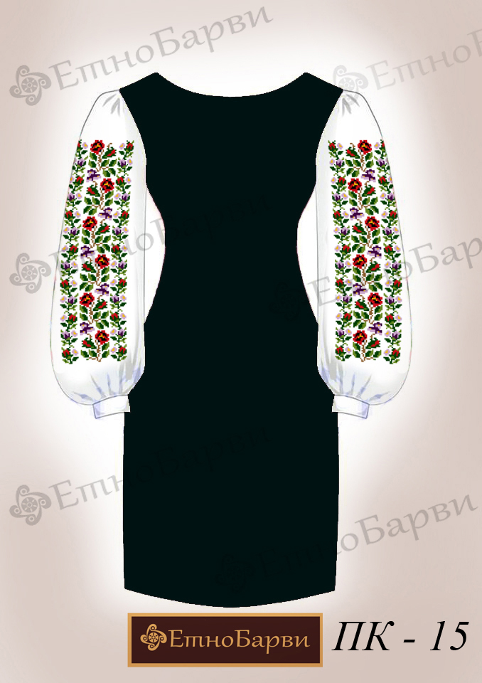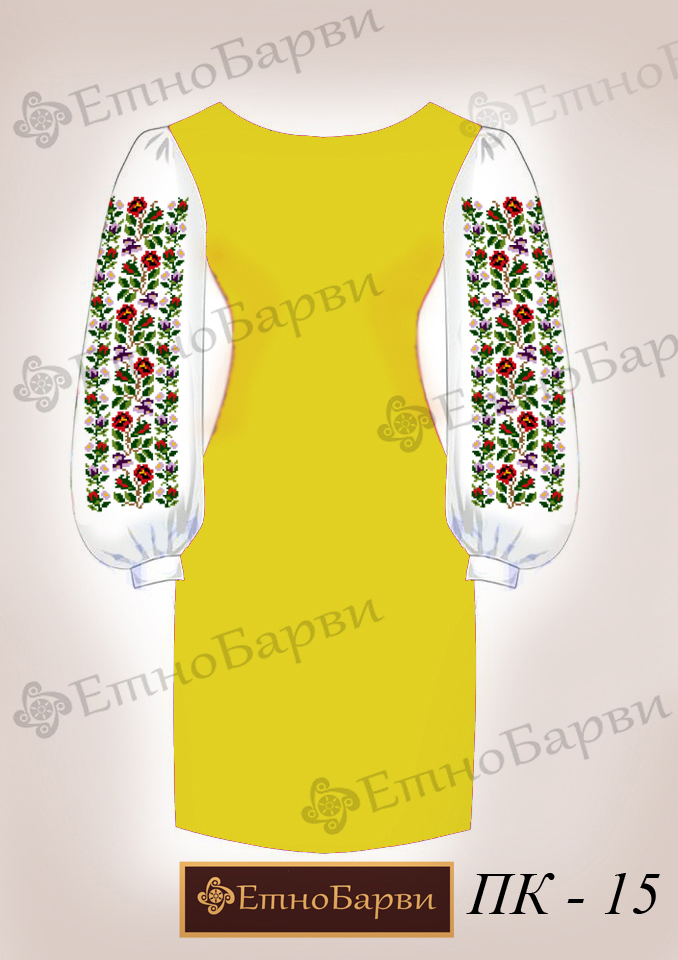 Заготовка плаття на довгий рукав на габардині складається з 2 полотен 75 см на 110 см ( перед та спинка на кольоровому габардині) та 2 полотен 75 см на 55 см ( рукави).