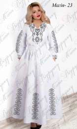 Тканина  для   вишивки    бісером, нитками або  в  змішаній  техніці   з нанесеною   повноколірною   схемою . В комплект входить  два   відрізи  тканини  50*60 см    на  перед і спинку, два відрізи 75*60см на рукави, 150*30см  пояс, спідниця 210*100см,     манжети, інструкція  в  якій вказані кольори бісеру  і  його  кількість, рекомендовані номери ниток DMC.
