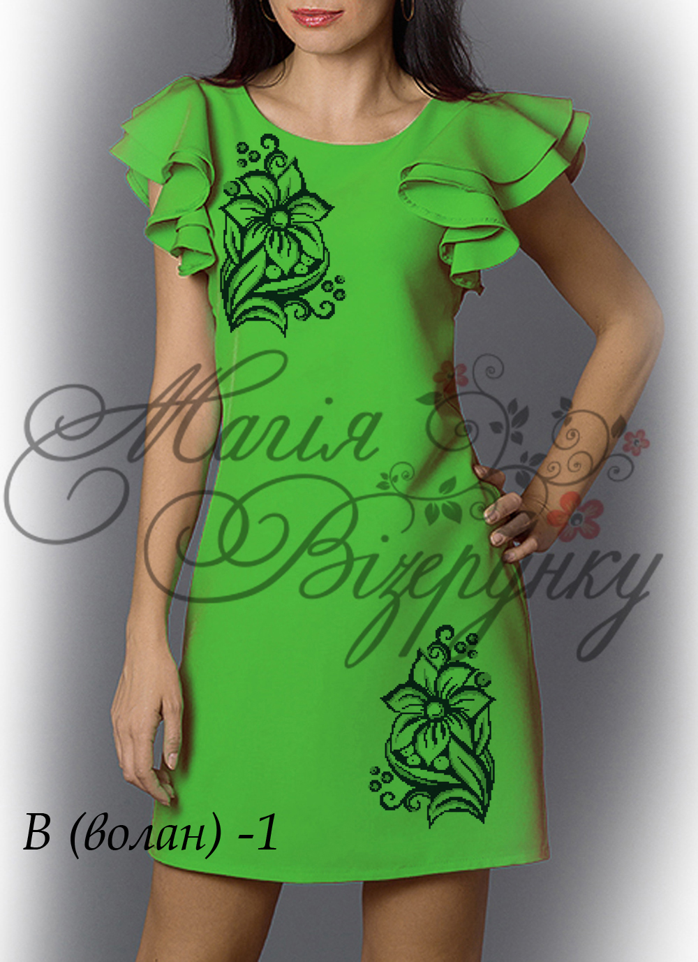 Заготовка для вишивки плаття на короткий рукав складається з двох полотен кольорового габардину 1,1м*0,75м на перед та спинку та двох полотен 0,75м*0,65м на рукави.