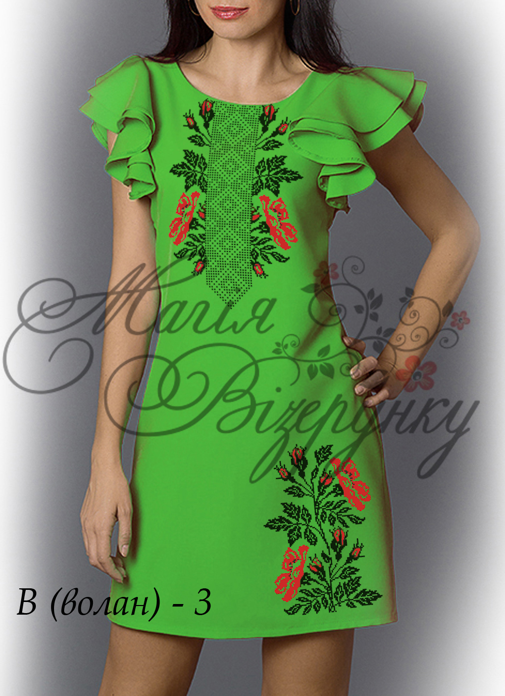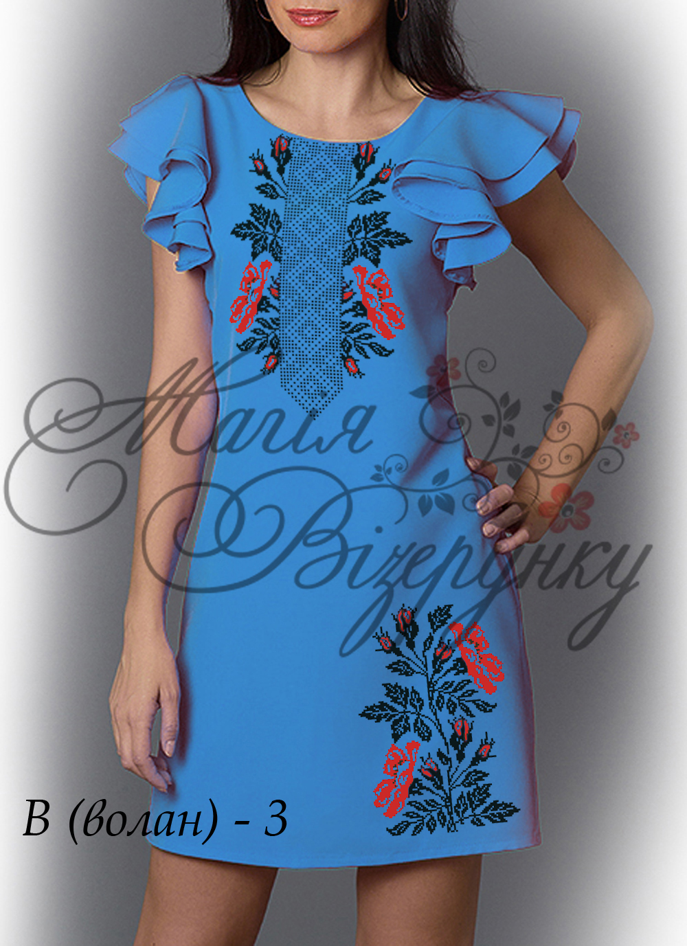 Заготовка для вишивки плаття на короткий рукав складається з двох полотен кольорового габардину 1,1м*0,75м на перед та спинку та двох полотен 0,75м*0,65м на рукави.