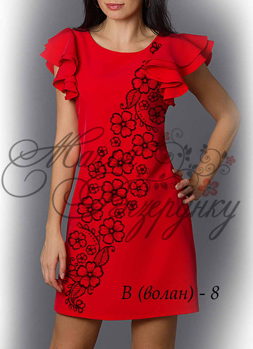 Заготовка для вишивки плаття на короткий рукав складається з двох полотен кольорового габардину 1,1м*0,75м на перед та спинку та двох полотен 0,75м*0,65м на рукави.