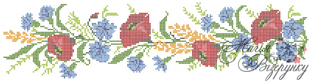 Заготовка   пояса  для  вишивки бісером нитками або в змішаній техніці з   нанесеною повно колірною схемою на тканині. Заготовка складається полотна 1,5м*30см. В   комплект   входить  інструкція  в  якій  вказано  кольори   бісеру  і  його кількість, рекомендовані  номери   ниток    DMC.
