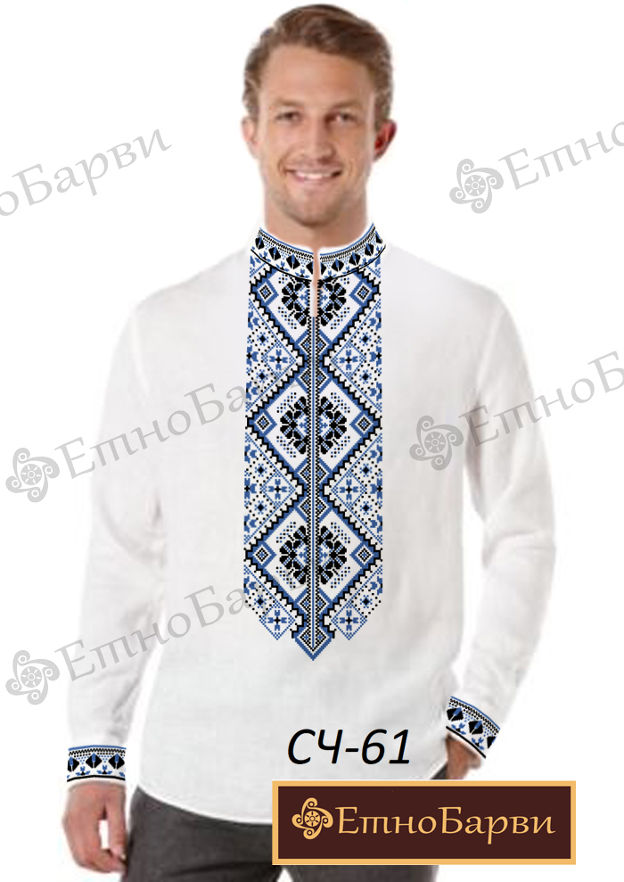 Розміри тканини на чоловічу заготовку: перед та спинка 75 на 80 см, 2 полотна на рукави 75 на 80 см.