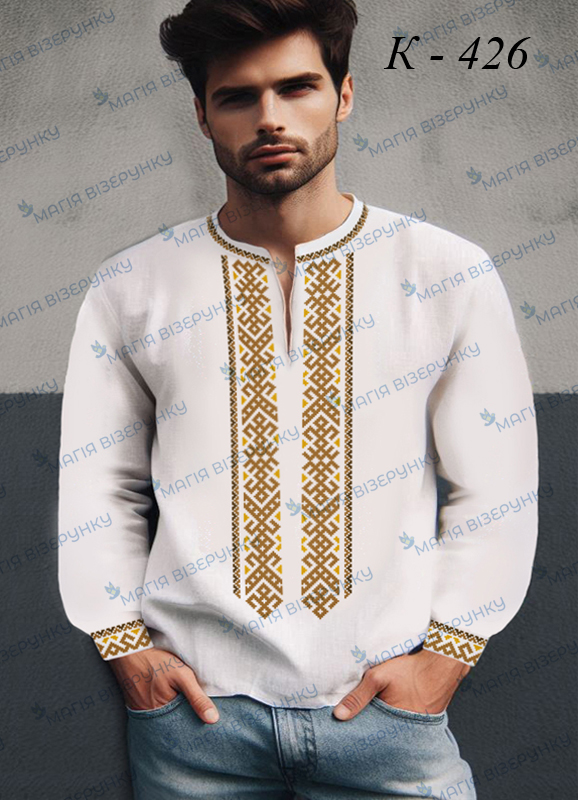 Тканина для вишивки нитками, бісером з нанесеною повно колірною схемою  . В  комплект   входить чотири відрізи тканини  75*80см з друком на передню частину та окремого полота з друком  манжетів і  комірця,  інструкція   в  якій  вказано   кольори  бісеру  і  його кількість  та   рекомендовані  номери ниток DMC.   Дану  заготовку  ви  можете  скроїти  за  своїми  розмірами  та  фасоном. Перед  вишивкою потрібно  зробити розмітку горловини та обробити розріз (петлевим швом ,можна вставити замочок чи ін.).