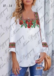 Жіноча сорочка для вишивки бісером, нитками або в змішаній техніці з нанесеною повноколірною схемою на тканині. Заготовка складається з двох полотен 75*75см на передню частину і на спинку (без вишивки) та двох полотен 75*65 см на рукави. В комплект входить інструкція в якій вказано кольори бісеру і його кількість, рекомендовані номери ниток DMC.  Дану заготовку ви можете скроїти за своїми розмірами та фасоном.