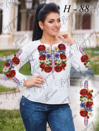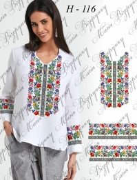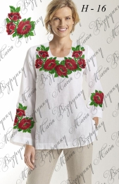 Жіноча сорочка для вишивки бісером, нитками або в змішаній техніці з нанесеною повноколірною схемою на тканині. Заготовка складається з двох полотен 75*75см на передню частину і на спинку (без вишивки) та двох полотен 75*65 см на рукави. В комплект входить інструкція в якій вказано кольори бісеру і його кількість, рекомендовані номери ниток DMC.  Дану заготовку ви можете скроїти за своїми розмірами та фасоном.