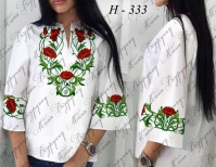 Жіноча сорочка для вишивки бісером, нитками або в змішаній техніці з нанесеною повноколірною схемою на тканині. Заготовка складається з двох полотен 75*75см на передню частину і на спинку (без вишивки) та двох полотен 75*65 см на рукави. В комплект входить інструкція в якій вказано кольори бісеру і його кількість, рекомендовані номери ниток DMC.  Дану заготовку ви можете скроїти за своїми розмірами та фасоном.