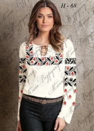 Жіноча сорочка для вишивки бісером, нитками або в змішаній техніці з нанесеною повноколірною схемою на тканині. Заготовка складається з двох полотен 75*75см на передню частину і на спинку (без вишивки) та двох полотен 75*65 см на рукави. В комплект входить інструкція в якій вказано кольори бісеру і його кількість, рекомендовані номери ниток DMC.  Дану заготовку ви можете скроїти за своїми розмірами та фасоном.